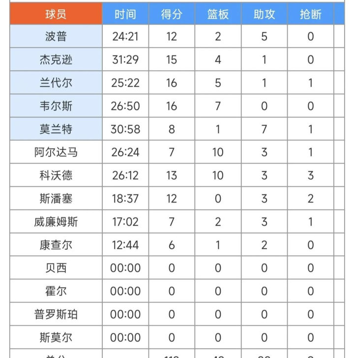 灰熊首发:波普、杰克逊、兰代尔、韦尔斯、莫兰特。